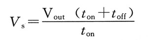 式中,Vout=所要求的輸出電壓,V; ton=導通時間,μs; toff=關斷時間,μs。 在這個例子中,