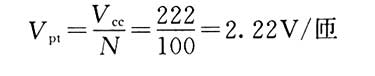因此較小副邊電壓是10V。允許二極管和電感繞組上有1V的壓降,V,變成11V。這必須在90V的較小充電器輸入和16。5s的較大的導(dǎo)通時間時是有效的。 原邊直流電壓為90V時,Vcc是 Vcc=90×1.3×1.9=222V 因原邊Nmin-=100匝,每匝電壓(Vpt)是