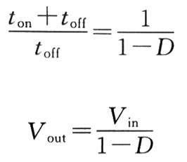 與降壓變換器一樣,為維持穩態條件,加到L1兩端的正向和反向伏秒必須相等。輸出電壓V。由功率開關的占空比和輸入電壓來控制,如下式