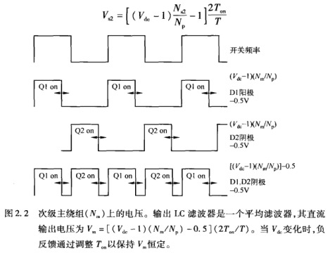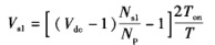 從式可以看出,當輸入V變化時,為保持Vm恒定,負反饋就會起作用,使輔輸出也保持不變。根據式,輸入變化時,反饋環會改變導通時間T使得(Vdc-1)Ton的值保持不變,以維持V恒定。相同的(Vdc-1)Ton也出現在式和式中,因此Vdc改變時,Vs1和Vs2也保持恒定。