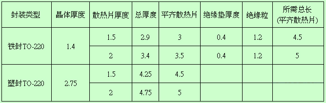 11.結構設計,散熱片使用螺絲固定參考以下表格設計,實際應用中應增加0.5-1mm余量,參考如下表格: