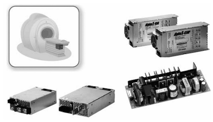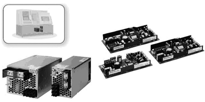 由于醫療儀器直接接觸醫療工作者和患者的身體,因此對于電源適配器的漏電流有著嚴格的規定,并且對可靠性有很高的要求。目前市場上有多種醫療標準認可的多路輸出電源和內置數字控制回路的前端電源,如圖所示。
