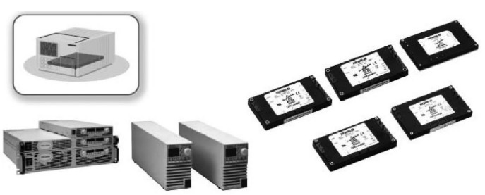 目前市場上有較適合這種分散供電的模塊和DC/DC變換器產品,還擁有用于老化試驗等各種試驗和檢測的可調電源產品,如圖1-12所示。這種電源包括高電壓小電流電源、大電流電源、400Hz輸入的AC/DC電源等,可根據特殊需要選用。