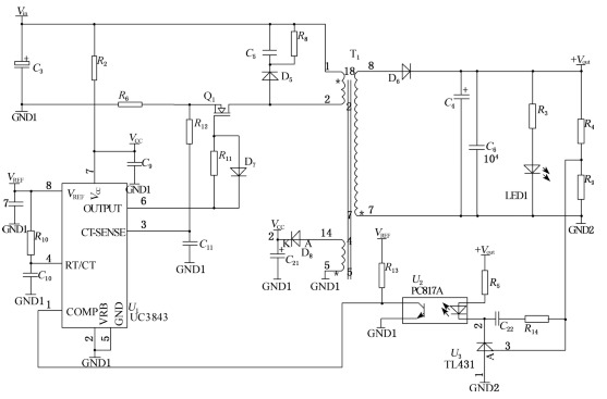 | 隨著世界范圍內對節能和環保的日益重視,使得電源行業對電源適配器的工作能效和待機損耗的要求不斷增加,本文以15W繼續式反激電源適配器為研究背景。設計一個完全能量傳遞反激式電源適配器 斷續模式的反激電源適配器設計,其技術指標如下: 輸入電壓:41~57VDC; 輸出電壓:17V; 輸出電流:0.8A; 額定效率:ηN≥80%; 開關頻率:f=82kHz。 斷續模式反激電源適配器電路設計 反激電源適配器電源適配器的電路原理圖如圖所示。主控芯片采用電流型控制芯片UC3843;輸入輸出電氣隔離;主控芯片UC3843與輸入為同一參考,這樣便于驅動、電流采樣和芯片的啟動;電壓誤差放大器與輸出為同一參考,誤差放大后的信號由光耦合器隔離傳回輸入側;芯片啟動以后供電由主電路的一個輔助繞組提供;變壓器原邊繞組加RCD吸收回路;輸出加LED指示燈。 ![]() 圖反激電源適配器電路原理圖 反激電源適配器RCD緩沖器的設計 圖是考慮寄生元件時反激式電源適配器的結構,這些寄生元件有:原邊和副邊的漏感Llk1和Llk2,MOSFET輸出電容Coss,二次側二極管結電容Cj。 ![]() 圖帶寄生元件的反激式電源適配器結構 工作于CCM和DCM下的id、iD和Vds的波形如圖12-3所示。當MOSFET關斷時,原邊電流(id)短時間內給MOSFET的Coss充電,當Coss兩端電壓Vds超過輸入電壓與反射電壓之和(Vin+nVo)時,二次側二極管導通,電感Lm兩端電壓鉗于nVo。Llk1和Coss之間會有高頻諧振和高的浪涌電壓,這個過高的電壓會作用于MOSFET,可能會引起MOSFET燒毀。 ![]() 在CCM下,二次側二極管保持導通直到MOSFET導通,當MOSFET導通時,二極管的反向恢復電流被加到原邊電路上,因此在MOSFET導通瞬間會在原邊電路里出現大的浪涌電流;在DCM情況下,一個開關周期結束以前,副邊電流已經降到0,Lm和MOSFET的Coss之間發生諧振。 Llk1與Coss諧振時會產生過高電壓,應該用緩沖電路來吸收這一電壓過沖,使開關管得到保護。 需要提醒讀者,反激電源適配器的優化設計是一個具有多個相互聯系的自變量的復雜數學模型,目前本文所闡述的優化設計方法也只是在假設一些變量固定的基礎上進行的,因此,本課題的優化設計結果并非較優結果。只是在一定的范圍內的較優化設計