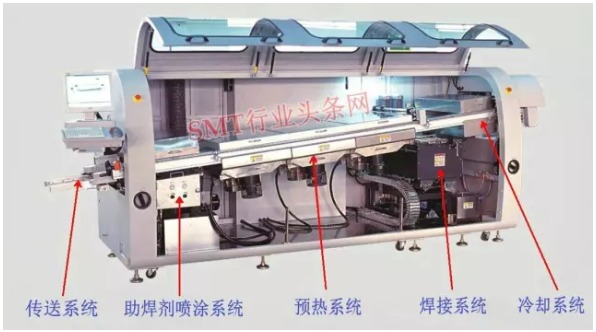 下面以雙波峰焊機的工藝流程為例,來說明波峰焊的工作原理 :
