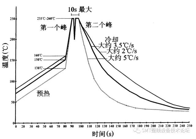 B3.預熱區長度:預熱區的長度影響預熱溫度,在調試不同的波峰焊機時,應考慮到這一點對預熱的影響;預熱區較長時,溫度可調的較接近想要得到的板面實際溫度;如果預熱區較短,則應相應的提高其預定溫度。