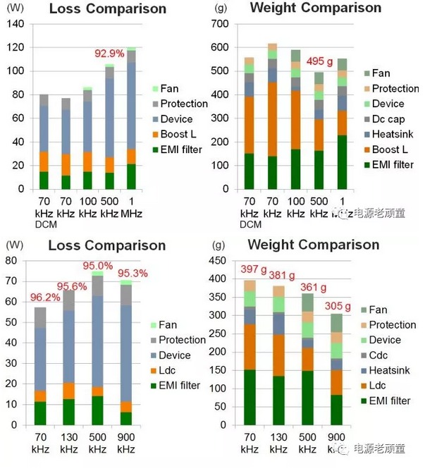 | 電源適配器EMI和干擾 在我接觸EMI前,很多電源適配器工程師以他們有豐富的EMI調試經(jīng)驗來鄙視我們這些菜鳥,搞的我一直以為EMI是門玄學,也有很多人動不動就拿EMI出來嚇人。我想說電源適配器EMI確實很難理解,很難有精確的紙面設計,但是通過研究我們還是能知道大概趨勢指導設計,而不是一些工程嘴里完全靠trial and error的流程。 這就是我們電源適配器工程師外出機構做測試的實驗室~ ![]() 我先給出結論,電源適配器EMI確實和開關頻率不成線性關系,某些開關頻率下,EMI濾波器的轉折頻率較高,但是總體趨勢而言,是開關頻率越高,電源適配器EMI體積越小! 我知道很多人開始噴我了,怎么可能,di/dt和dv/dt都大了,怎么可能EMI濾波體積還小了。我想說一句,共模和差模濾波器的沒有區(qū)別,相同的截止頻率下,高頻的衰減更大!就算你高頻下共模噪聲越大,但是你的記住,這個頻率下LC濾波器的衰減更大,想想幅頻曲線吧。為了說明這個結論,我給出一些定量分析結果。這些EMI分析均基于AC/DC三相整流,拓撲為維也納整流。我分別給出了1Mhz和500Khz的共模噪聲,可以看出,500khz共模濾波器需要的截止頻率為19.2kHz,1MHz為31.2kHz。 ![]() 這張圖給出了不同頻率下共模和差模濾波器轉折頻率的關系,可以看出,一些低頻點EMI濾波器體現(xiàn)出了非常好的特性。例如70Khz,140Khz。而這兩個開關頻率是工業(yè)界常用的兩個開關頻率,非常討巧,因為EMI噪聲測試是150KHz到30MHz。不過這個也與拓撲有關。 ![]() 以上數(shù)據(jù)均基于仿真,雖然不能精確的反應EMI噪聲的大小,但是趨勢肯定是正確的。說了這么多,我只想表明,開關頻率的選取相當有學問。如果要以高功率密度為設計指標,開關頻率并不是越高越好,而是有一個較佳轉折點。下面2張圖給出了維也納整流器和BUCK-type整流器的功率密度趨勢,可以看出,較佳功率密度點不是一個開關頻率。對那些拍著腦瓜選開關頻率,解決EMI問題并且鄙視過我的老工程師,我還是懷有很大敬意的,但是我想說的是,如果真正想設計一臺較高功率密度的變換器,詳細的考證是值得的,還不是單純依靠經(jīng)驗,況且經(jīng)驗背后也是一定有理論支持。 ![]() 我不禁問個問題,都有EMI濾波器,EMI噪聲都符合標準,為啥高頻干擾大。難道大家在實際工程遇到高頻干擾是個假象?不是的,舉一個非常簡單的例子,剩下的自己思考吧。 在輸入電壓較高的場合中,一般開關管驅動的都需要隔離。我們知道隔離后一端的地一般要接到懸浮開關管的源端,一般這一點的電平是跳變的,以氮化鎵晶體管為例,這點電壓變化率可以達到140kV/us。而隔離芯片前一端的地是與控制地連接的,你隨便看看隔離模塊電源的手冊,原副邊耦合的寄生電容一般在60pF左右,也是就說在高速開關瞬間,會產(chǎn)生大約6A的電流從副邊的地通過電容耦合到原邊,原邊的地電平肯定瞬間產(chǎn)生尖峰,整個控制系統(tǒng)產(chǎn)生強烈的干擾。所以做高頻的時候,隔離電源的地線千萬不要平行的鋪在2層PCB中,干擾效果會更加強烈。 同時選隔離芯片的時候也需要注意一個參數(shù)叫做CM transient immunity(肯定會給的),這個參數(shù)較好大于開關瞬間,橋臂中點電平的變化速率。光耦隔離這個參數(shù)一般在30kV/us,磁耦在35kV/us,電容耦合在50kV/us(是不是絕望了,都比氮化鎵低,硅器件一般在10kV/us,Sic 30kV/us)。 ![]() 還有很多細節(jié)可以引起干擾,不過真的不是EMI噪聲做的孽。 我先簡單的把以上內容總結一下: 電源適配器不是開關頻率越高,功率密度就越高,目前這個階段來說真正阻礙功率密度提高的是散熱系統(tǒng)和電磁設計(包括EMI濾波器和變壓器)和功率集成技術。 慎重選擇開關頻率,開關頻率會極大的影響整個變化器的功率密度,而且針對不同器件,拓撲,較佳的開關頻率是變化的。 高頻確實產(chǎn)生很多很難解決的干擾問題,往往要找到干擾回路,然后采取一些措施。 為了繼續(xù)維持電力電子變換器功率密度的增長趨勢,高頻肯定是趨勢。只是針對高頻設計的電力電子技術很不成熟,相關配套芯片沒有達到要求,一些高頻的電源適配器電磁設計理論不完善和精確,使用有限元軟件分析將大大增加開發(fā)周期。 文章轉載自網(wǎng)絡,如有侵權,請聯(lián)系刪除。 |
