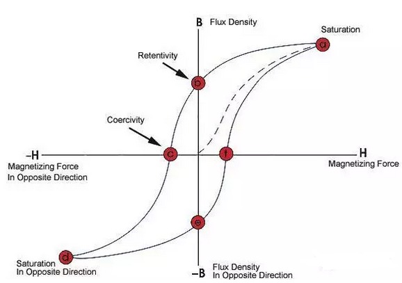 增加磁芯的磁導率,可以提高電感值,通常使用鐵磁性材料做磁芯。鐵磁性材料存在磁飽和現(xiàn)象,即當磁場強度超過一定值時,磁感應強度不在增加,即磁導率下降了,也就是電感下降了。在額定電感值范圍內,允許的較大電流即為飽和電流。