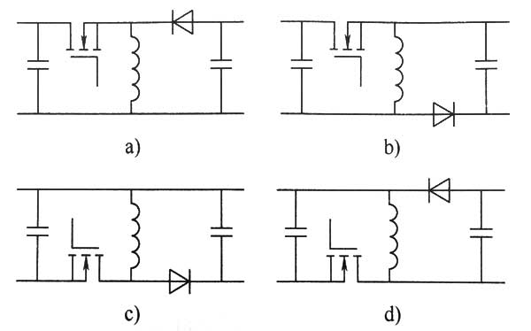 在做反極性變換器演化之前,需要清楚一個概念,這就是充電器電路的等效變換? 充電器反極性變換器演化的準則為:在不考慮輸人輸出參考電位關系的條件下,輸人輸出電壓關系不變,電路拓撲關系不變,即等效變換?在這個基本準則下,電路的演化可以通過元器件的易位實現? 根據充電器等效變換原理,電路元器件的易位原則是:每一個元器件都可以在自己原支路上變化位置,電路功能不變?如果電路元器件的易位過程中經過了由多個支路的電路節點,則該元器件將不能易位? 反極性變換器中的各元器件易位過程如圖2-1所示?