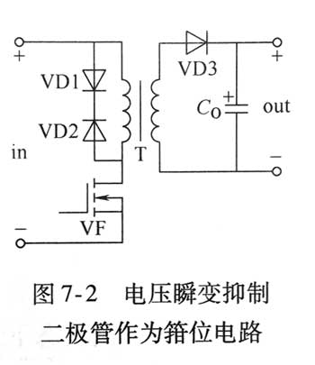 反激式電源適配器的另外一種箝位方式是采用類似于穩壓二極管的“電壓瞬變抑制二極管”來沿位開關管漏源極電壓峰值?在理論上,采用電壓瞬變抑制二極管可以使箝位時間大大縮短,所消耗的箝位功率也會比RCD箝位低一些。 過去電壓瞬變抑制二極管箝位之所以沒有被普遍應用的較主要的原因是這類二極管價格昌,2年前,一個連續功耗25W,m,廠時功率190的電壓瞬變抑制二極管的零售價接近每只10元m°牛人民幣,這是一般的反激式電源適配器絕不會采用的。 近年來,隨著電壓瞬變抑制二極管的國產化和大量的應用電壓瞬變抑制二極管的價格已經可以比較輕松地應用在反激式電源適配器中?采用電壓瞬變抑制二極管的而箝位電路如圖7-2所示。 圖中VDl為電壓瞬變抑制二極管? 需要注意的是,采用電壓瞬變抑制二極管來箝位,希望變壓器和開關管的寄生電容越小越好。