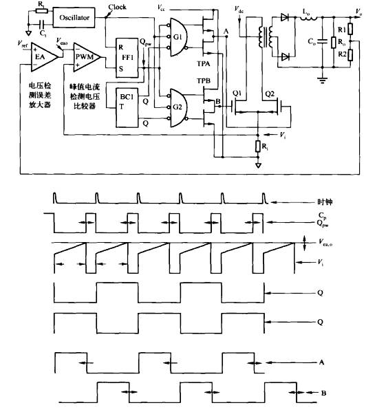電流模式檢測每個周期的電流脈沖,并且通過調整晶體管導通時間使交替電流脈沖峰值相等。這一特點使推挽電路可應用于各種新設計,并且對其他拓撲也非常有價值。例如,電流模式出現之前,為可靠防止偏磁,往往選擇沒有偏磁現象的正激變換器,而這提高了設計成本。