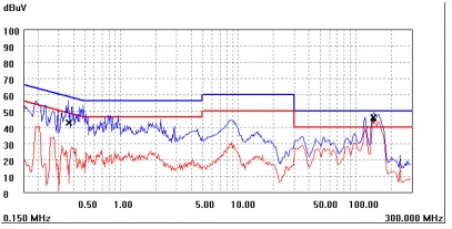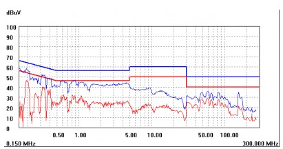 | 電源適配器廠家玖琪為大家分享一款36W電源適配器的EMI整改案例,輸出12V/3A,多圖對比,整改花費時間3周。 變壓器繞法一:Np1→VCC→Ns1→Ns2→銅屏蔽0.9Ts→Np2 PCB關(guān)鍵布局:Y電容地→大電容地,變壓器地→Vcc電容→大電容地 注:變壓器所有出線沒有交叉 圖一(115Vac) ![]() 圖一所示可以看到,130-200M處情況并不樂觀; 130-200M主要原因在于PCB布局問題和二次側(cè)的肖特基回路,改其它地方作用不大,肖特基套磁珠可以完全壓下來,圖忘記保存了。 為了節(jié)約成本,公司并不讓我這樣做,因為套磁珠影響了成本,當(dāng)即NG掉此PCB布局,采用圖一a方式PCB關(guān)鍵布局走線。 變壓器繞法不變:Np1→VCC→Ns1→Ns2→銅屏蔽0.9Ts→Np2 PCB關(guān)鍵布局:Y電容地→變壓器地→大電容地 注:變壓器內(nèi)部的初級出線及次級出線有交叉 圖一a (115Vac) ![]() 圖一a可以看出,改變PCB布局后130M-200M已經(jīng)完全被衰減,但是30-130M沒有圖一效果好,可能變壓器出線無交叉好一些。仔細(xì)觀察,此IC具有抖頻功能,傳導(dǎo)部分頻段削掉了一些尖峰; 圖一b(230Vac) ![]() 圖一b可以看到,輸入電壓在230Vac測試時,65M和83M位置有點頂線(紅色線) 圖一b-1(230Vac) ![]() 原邊吸收電容由471P加大到102P,65M位置壓下來一點,后面還是有點高,如圖一b-1所示; 圖一b-2(230Vac) ![]() 變壓器屏蔽改成線屏蔽(0.2*1*30Ts),后面完全衰減,如圖一b-2; 圖一b-3(115Vac) ![]() 115Vac輸入測試,后面150M又超了,發(fā)克!高壓好了低壓又不行,惱火啊!看來這招不行; 圖一b-4(115Vac) ![]() 變壓器屏蔽還是換成銅箔屏蔽(圈數(shù)由0.9Ts改成1.3Ts),效果不錯,如圖一b-4所示。 圖一b-5(230Vac) ![]() 115Vac輸入測試,測試通過。 結(jié)論: 一:變壓器出線需做到不交叉; 二:Y電容回路走線越短越好先經(jīng)過變壓器地再回到大電容地,不與其它信號線交叉;