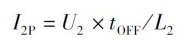 二次繞組電流與一次繞組電流有類似性質,只是變化趨勢相反。在功率管截止瞬間,變壓器一次繞組蓄積的能量轉移到二次繞組,二次繞組電流較大,為峰值電流I2P,隨后線性減小,到tOFF結束時剛好降為零,以便重新開始新的周期,即