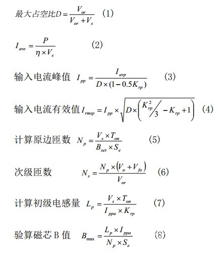 D=Vor/(Vor+Vs),D為占空比,Vor反射電壓,Vs低輸入電壓(此電壓一般為輸入的交流Vac*1.2,因為整流后的電解電容不會無窮大)。