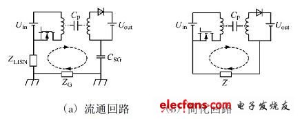 圖4變壓器中共模傳導EMI的流通回路