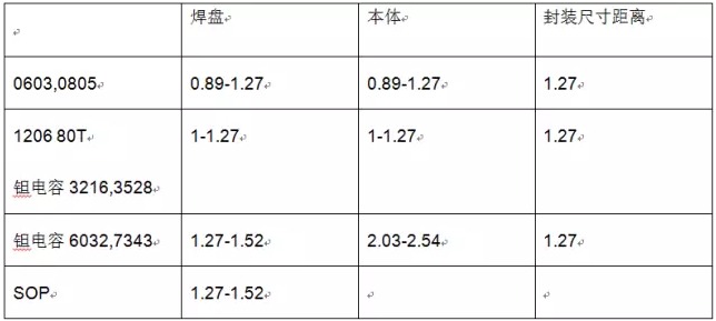 10貼裝組件焊盤同距離、本體間距離應滿足以下要求: