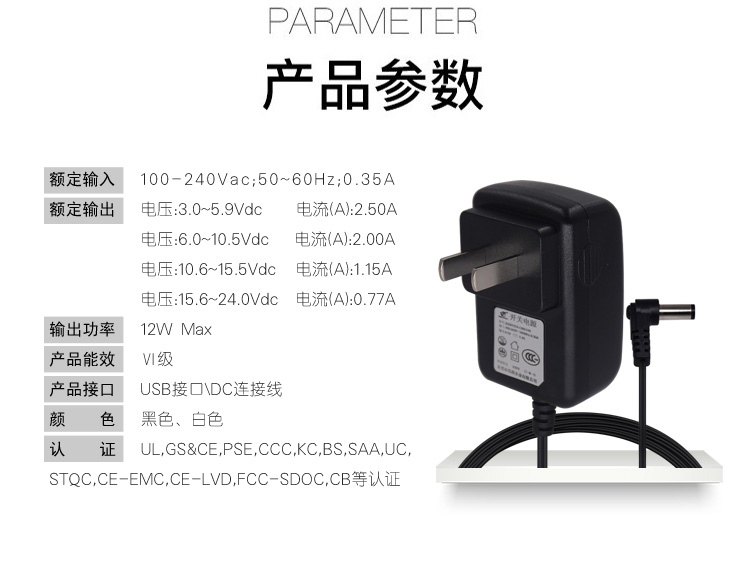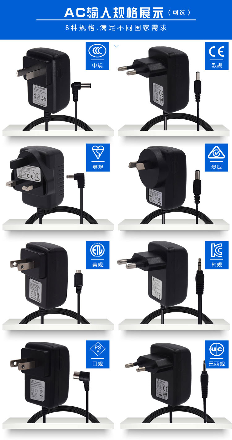 12V電源適配器產(chǎn)品系列圖:美規(guī)UL、韓規(guī)KC、澳規(guī)SAA、巴西uc、歐規(guī)GS&CE、日規(guī)PSE、中規(guī)CCC、英規(guī)BS、6級(jí)能效認(rèn)證電源適配器