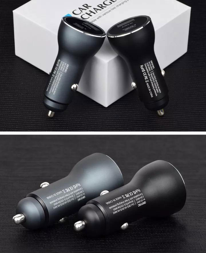 最新專利高品質車載充電器兼容 華為P9/10 MATE 9/10超級快充 OPPIO VOOC閃充及QC3.0/2.0等9種充電協議的安卓系統全功能快充的車載充電器。其中型號QK518C Type-C接口版實現IPHONE8/X PD快速充電。