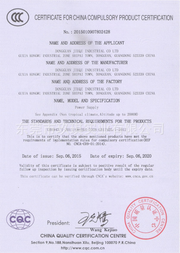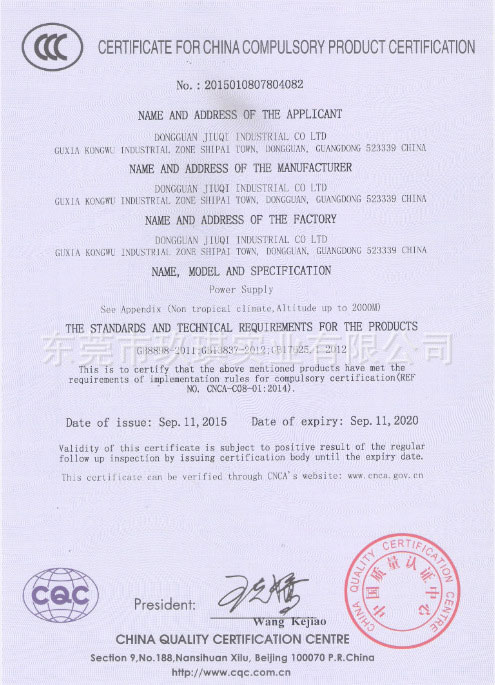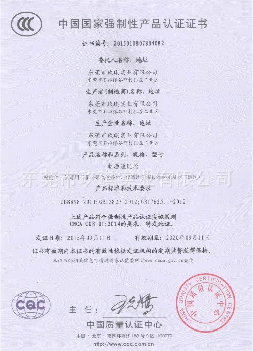 網(wǎng)站首頁 » 產(chǎn)品展示 » 產(chǎn)品認證 » 24W證書 » CCC安規(guī)證書-24W系列電源適配器
